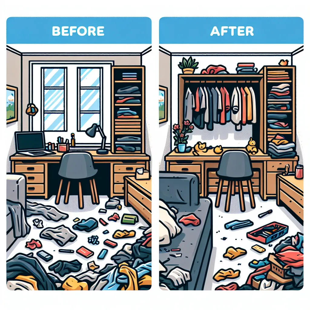 Уборка до и после демонстрирует значительное улучшение в организации и чистоте пространства. До уборки помещение может быть загроможденным, пыльным и неопрятным, что создает ощущение хаоса и дискомфорта. После уборки пространство становится более упорядоченным, чистым и приятным для пребывания, что способствует улучшению настроения и повышению продуктивности.